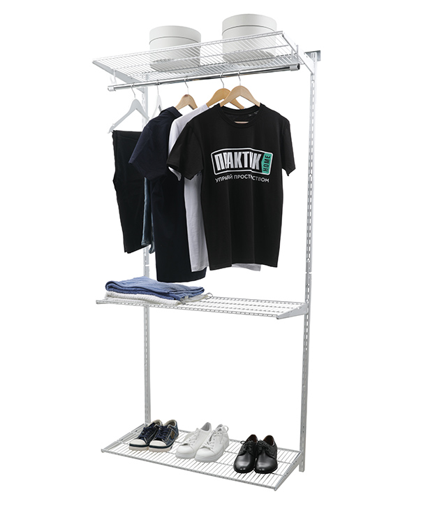 Гардеробная система Basic G90 белая от производителя ПРАКТИК в Казани можно купить в нашем интернет-магазине "Защита офис" по цене 6 840 руб. Внешние размеры товара - 2050x950x450. Шириной 950. Глубиной 450. Общий вес изделия 13 кг. Цвет товара Белый. Изделие имеет Порошковое покрытие.