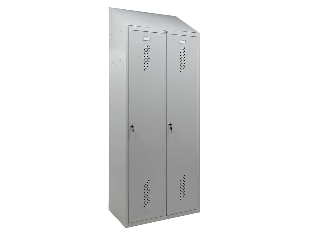 - Наклонные крыши (slope tops) для металлических шкафов-локеров устанавливаются для предотвращения скопления пыли, мусора и предметов сверху, а также для повышения безопасности и эстетики.
