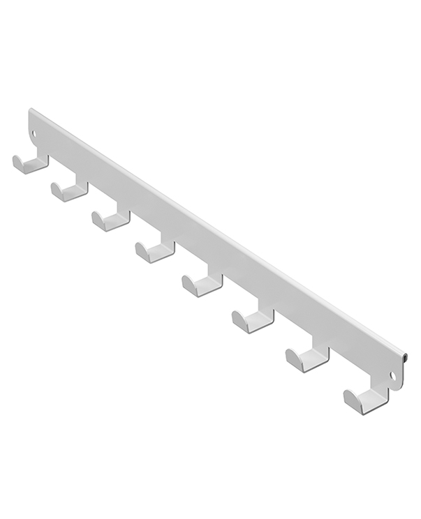 Она идеально подходит для хранения ремней, галстуков, шарфов, курток и других предметов одежды, обеспечивая порядок и быстрый доступ.Конструкция представляет собой металлическую планку с 6 или 8 крючками (в зависимости от модели), которая навешивается на внешнюю боковую поверхность кронштейна в гардеробной системе ПРАКТИК HOME.